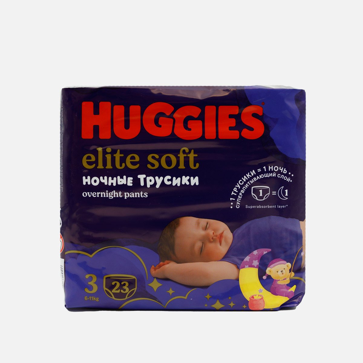 Трусики-подгузники Хаггис Элит Софт3 ночные 6-11кг 23шт