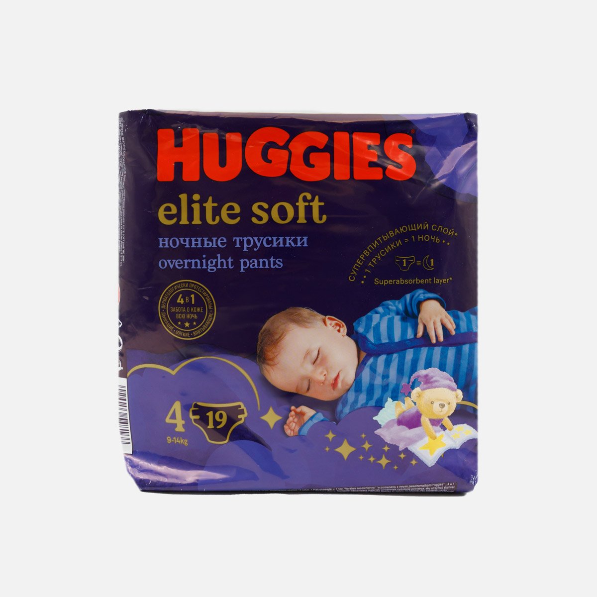 Трусики-подгузники Хаггис Элит Софт4 ночные 9-14кг 19шт