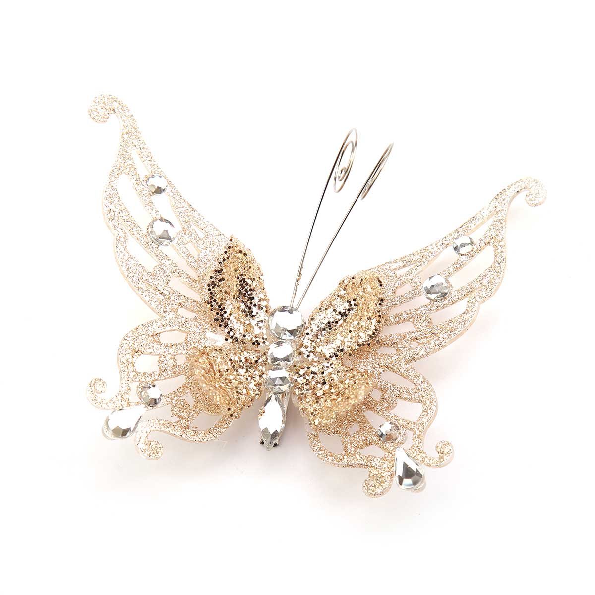 Украш елоч БабочкаФиджи дв со страз на прищеп12,5х9,5см полимерDM1803CG