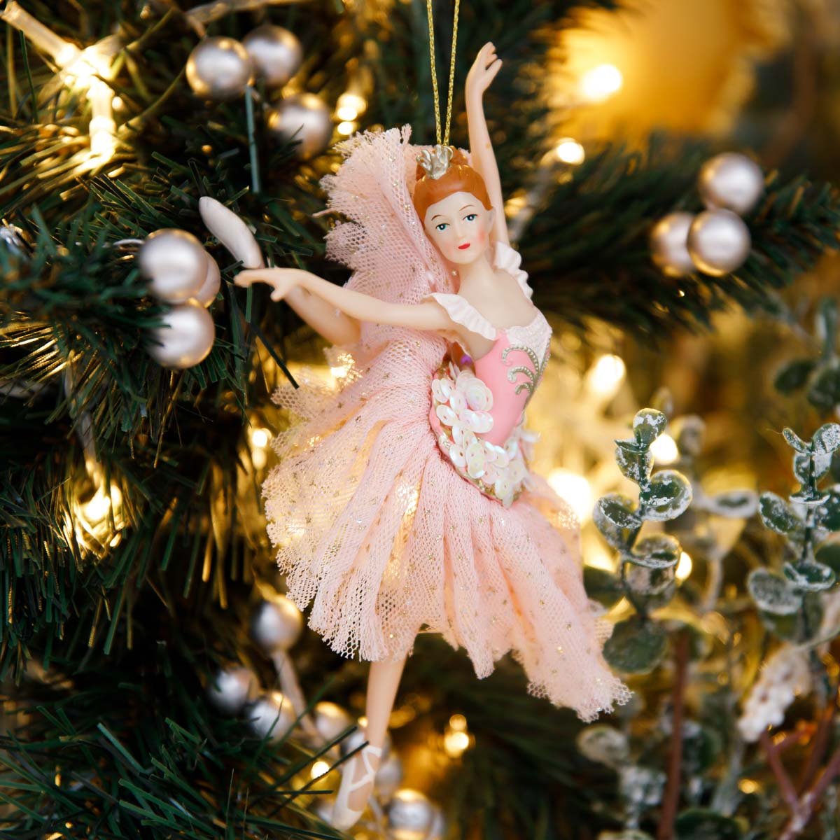Украш елочХолидейКлассик Балерина Дама с камелиями полистоун 11х10х18