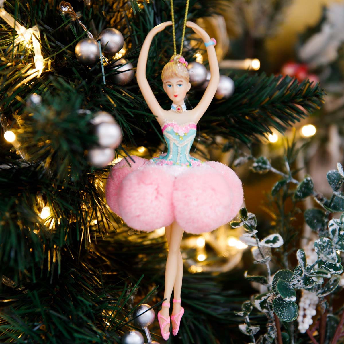 Украш елочХолидейКлассик Балерина Принцесса на горошине роз полистоун