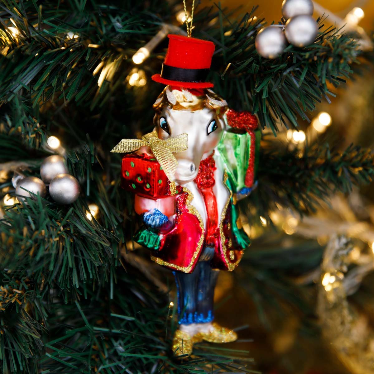 Украш елочХолидейКлассик Лошадка Джентльмен с подарками стек 7х5х16