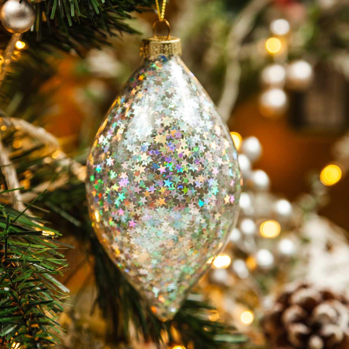 Украш елочХолидейКлассикКапляЛедяна фантаз с сереб звездоч стек12х12х6