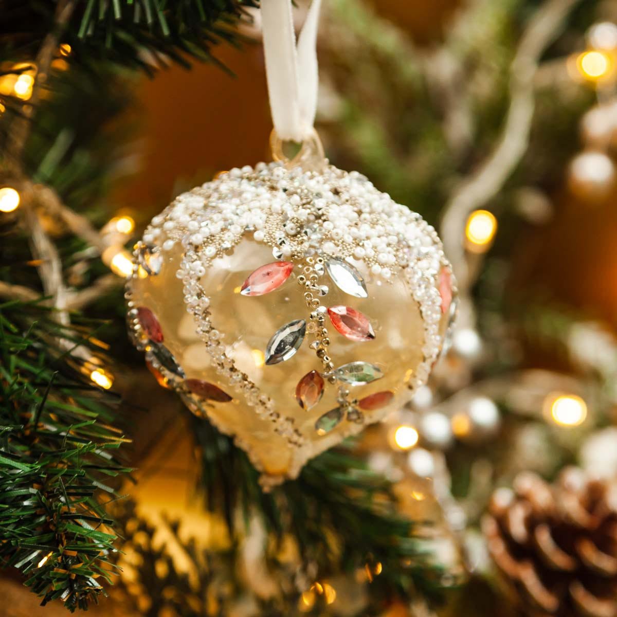 Украшен елочШишиКапля полупрозрач корич с листьями из камней 8см стек