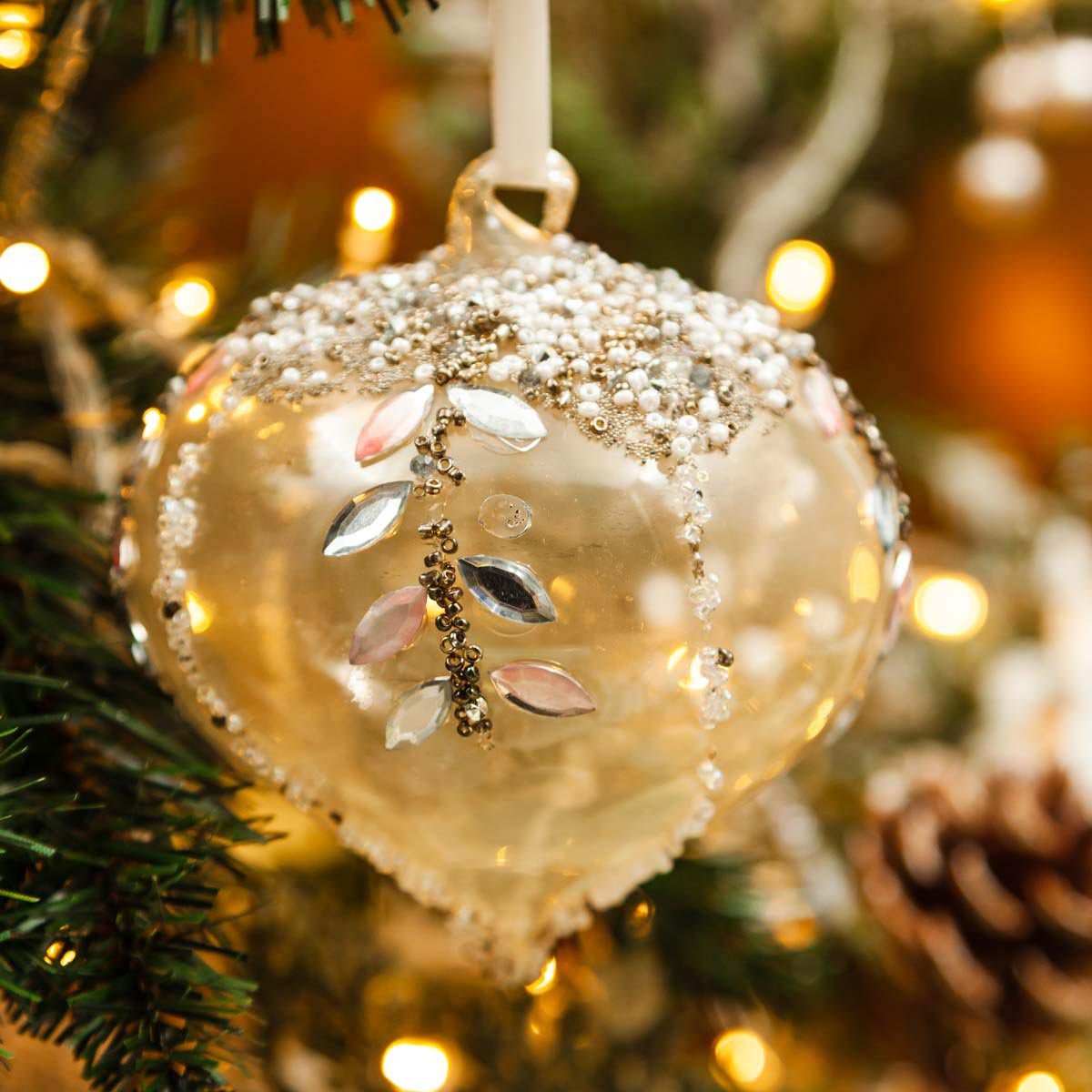 Украшен елочШишиКапля полупрозрач корич с листьями из камней10см стек