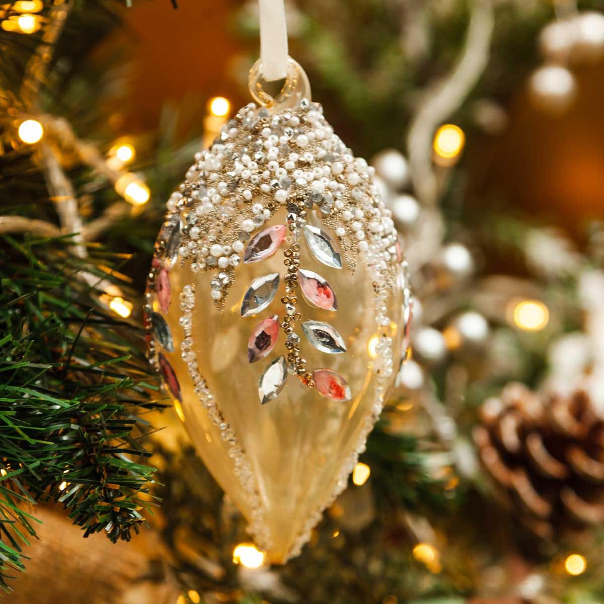 Украшен елочШишиКапля полупрозрач корич с листьями из камней12см стек