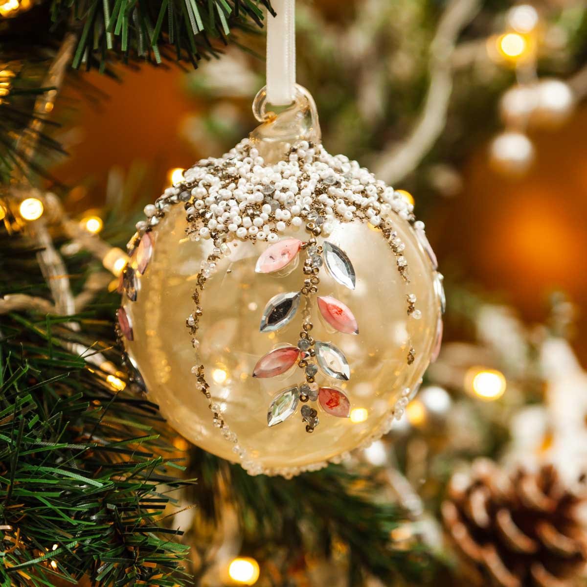 Украшен елочШишиШар полупрозр кор с листьями из камней 8см стек 63766