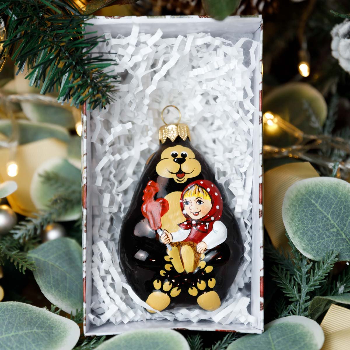 Украшение елоч Эвис Маша и медведь с ручной росписью стекло 10см