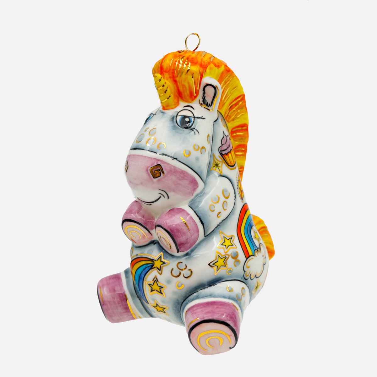 Украшение елоч Лефортовский фарфор Единорог радужный фарфор 8х9х11см