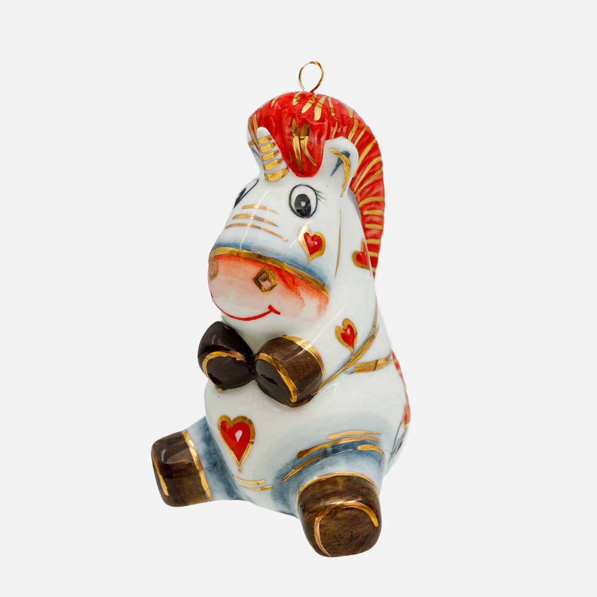 Украшение елоч Лефортовский фарфор Единорог с сердечк крас фарф 8х9х11
