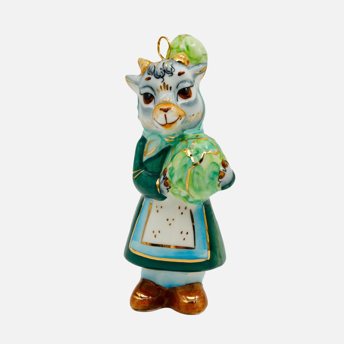 Украшение елоч Лефортовский фарфор Коза с капустой фарфор 4х4,5х11см