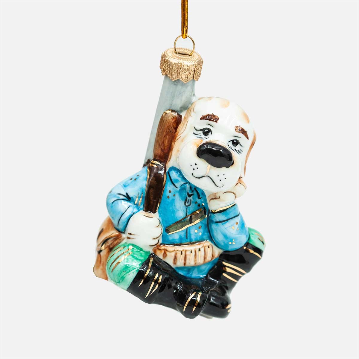 Украшение елоч Лефортовский фарфор Собака с ружьем охотник синий фарф