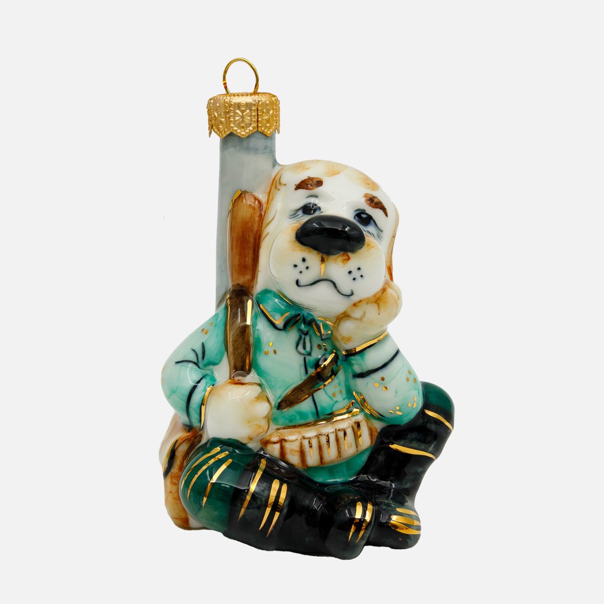 Украшение елоч Лефортовский фарфор Собака с ружьем охотник зелен фарф