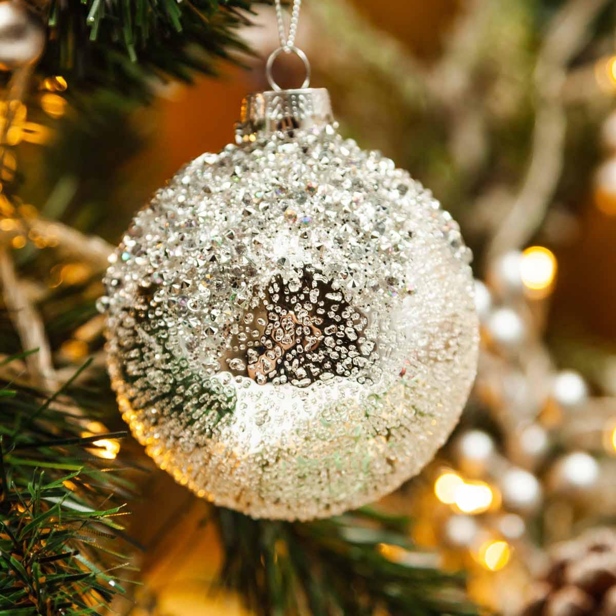 Украшение елоч Шар Ледяной архипелаг серебряный стекло 8см