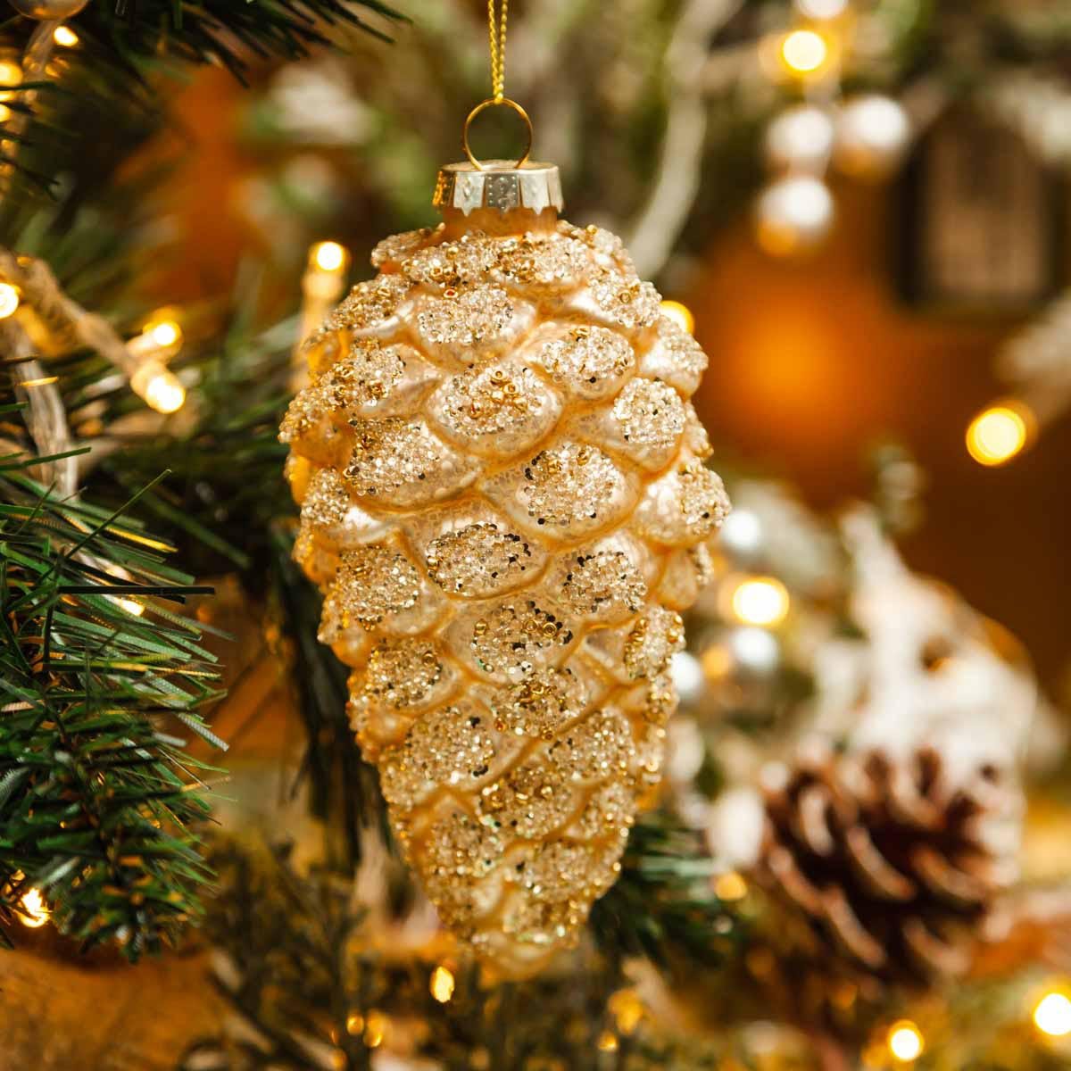 Украшение елоч Шишка Амурский кедр шампань винтаж стекло 7х7х13см