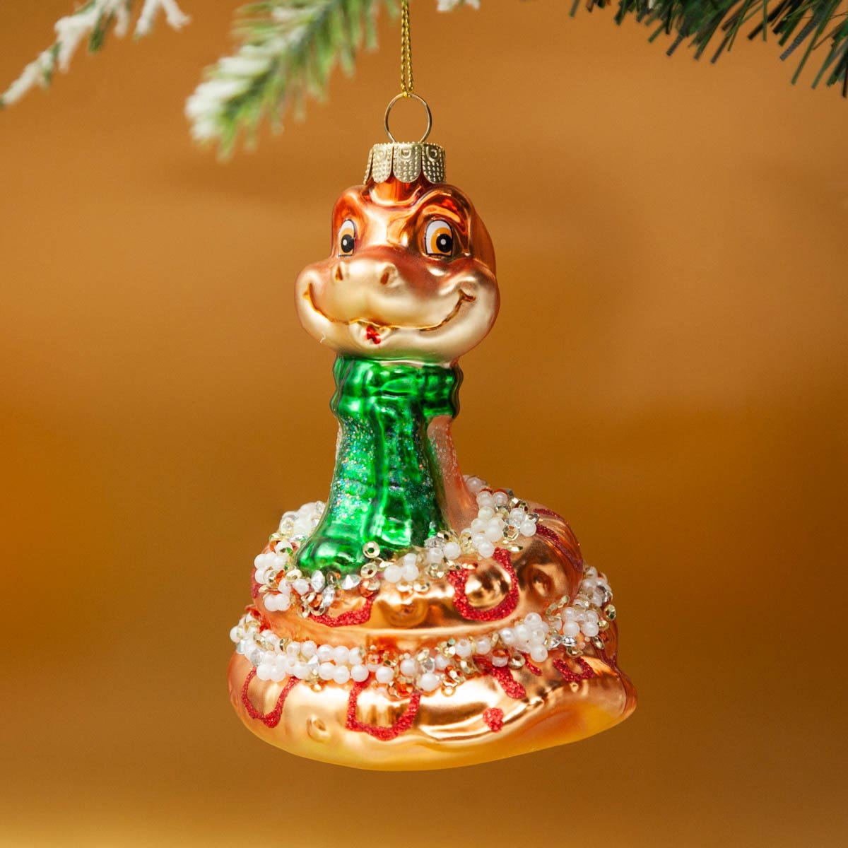 Украшение елоч Змея в шарфике бронзовая стекло 7,5х7х11,5см GLT11