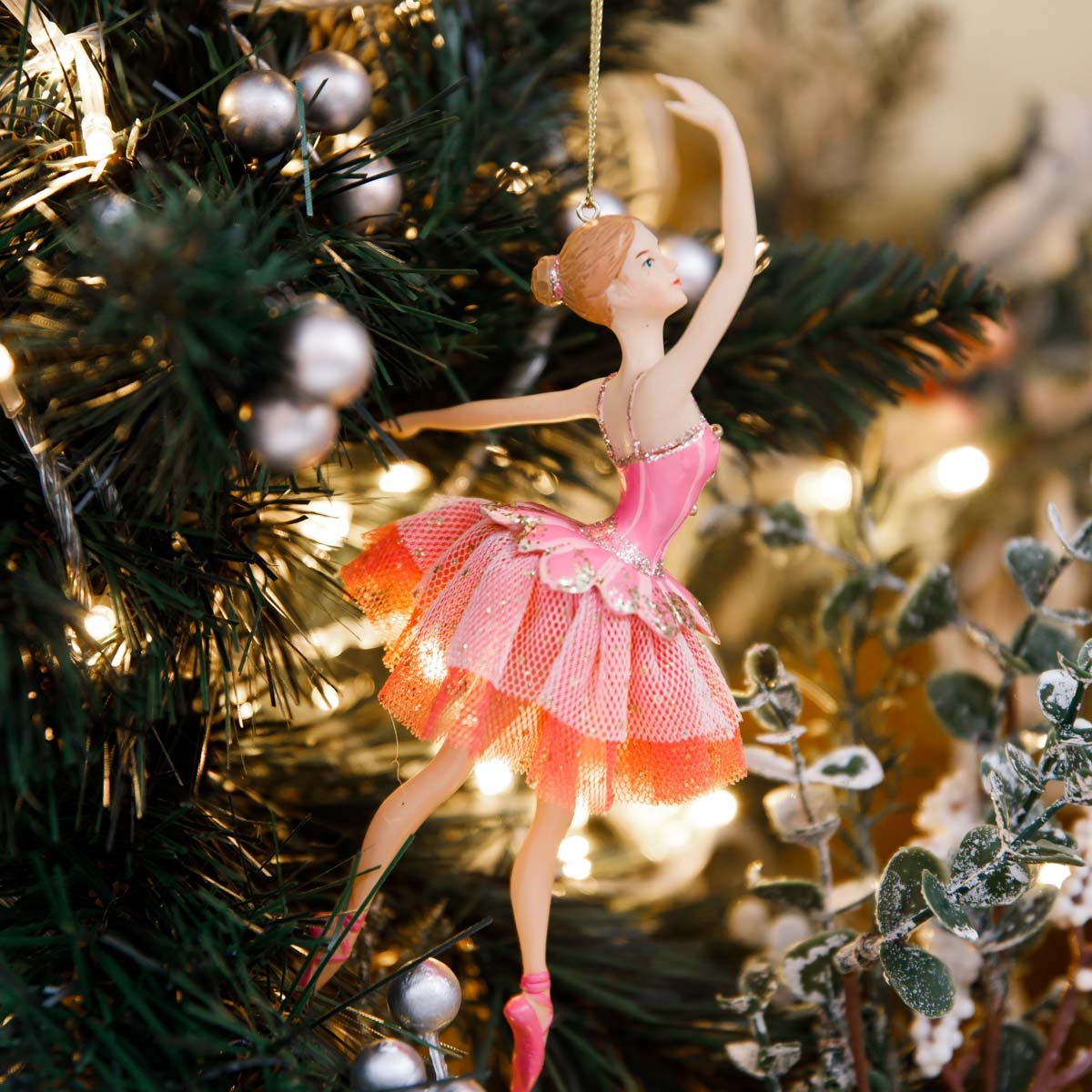 Украшение елочное Балерина Видение розы полистоун 9х5х18см