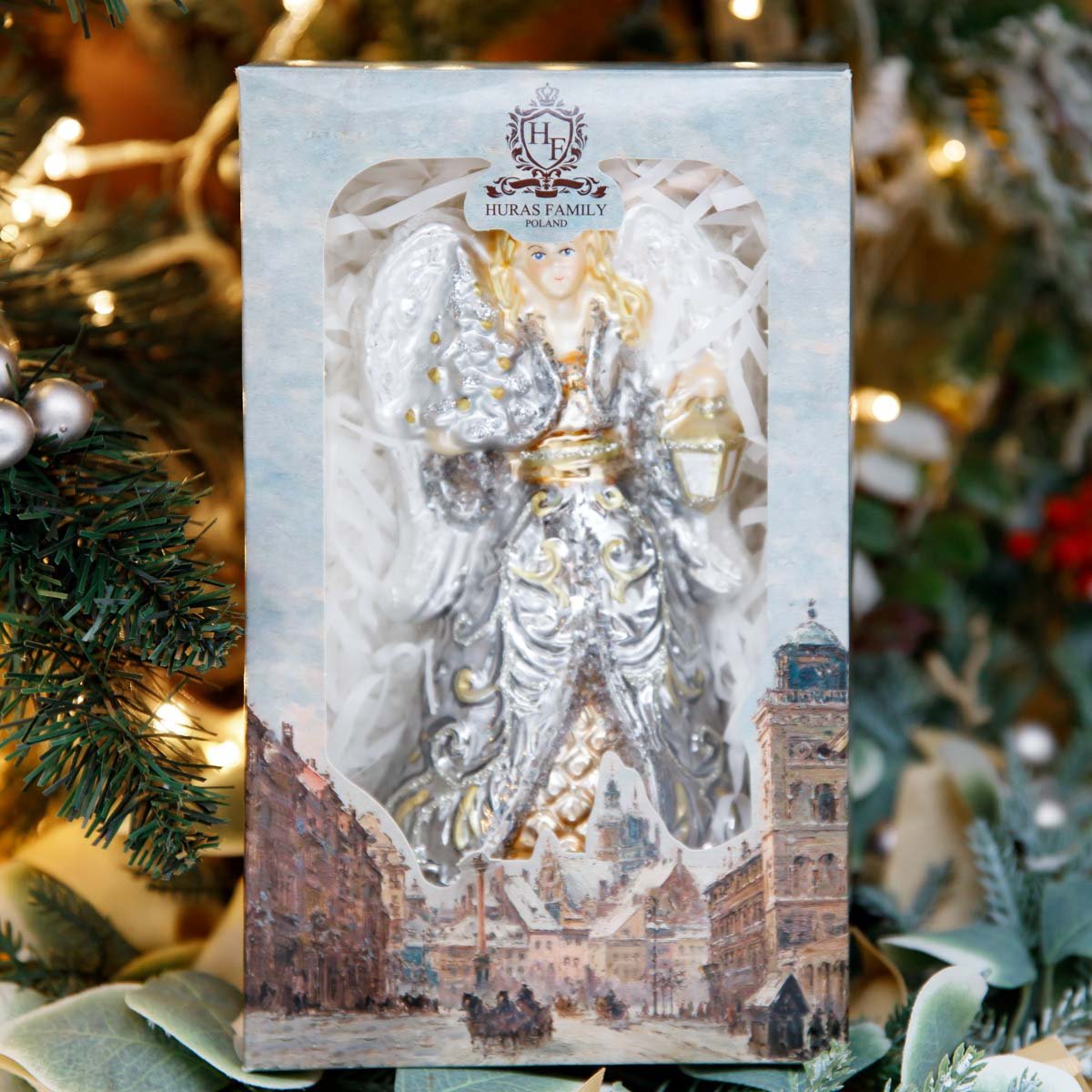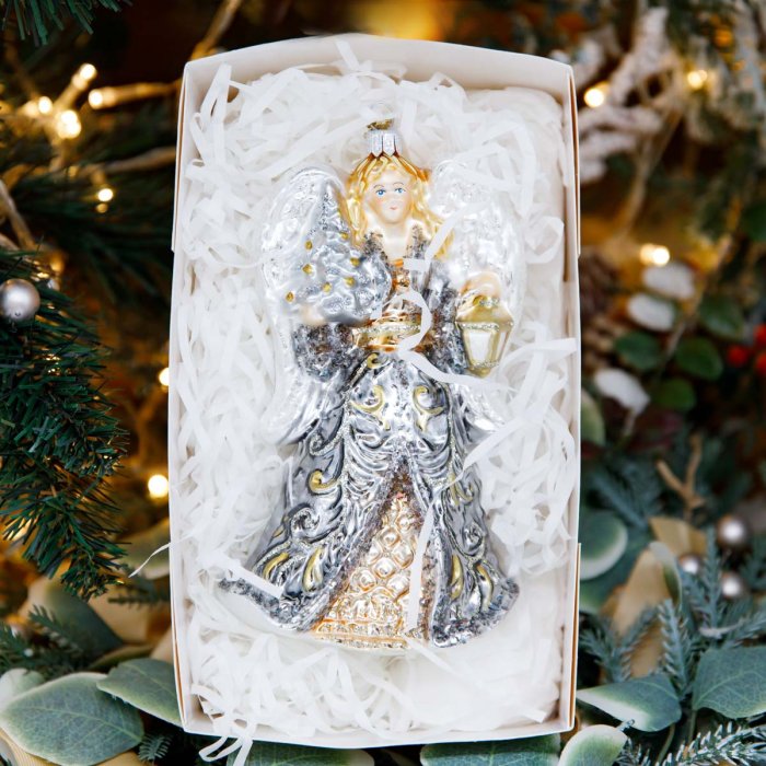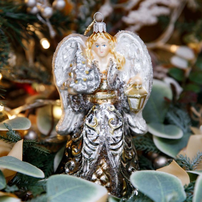 Украшение елочное Бело-золотая коллекция Ангел стекло 10,5х17,5см