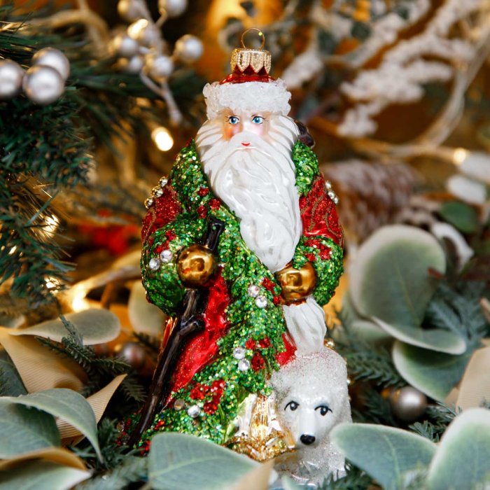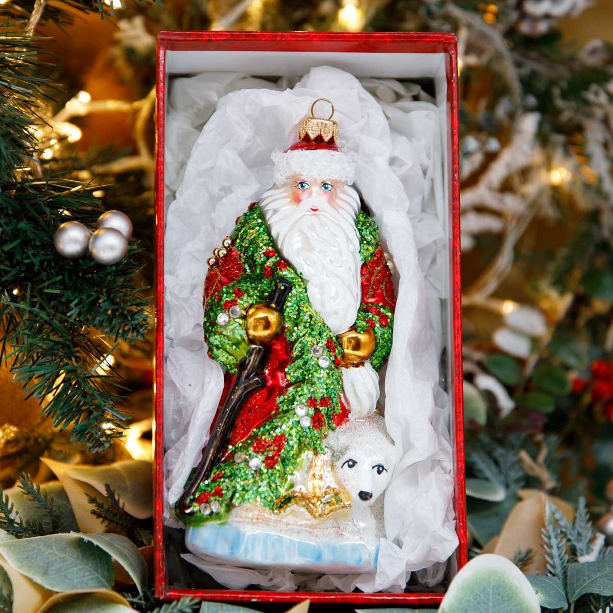 Украшение елочное Дед Мороз с белым медведем стекло 20х9,5см 100703