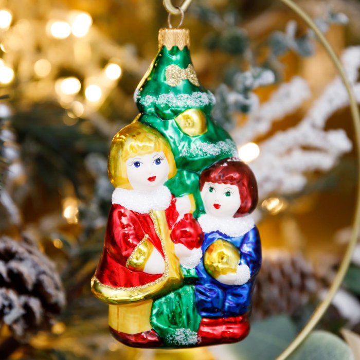 Украшение елочное Элита Дети у елки 14см стекло в упаковке ГФ-647