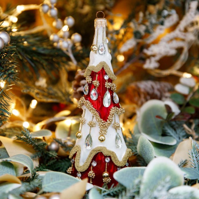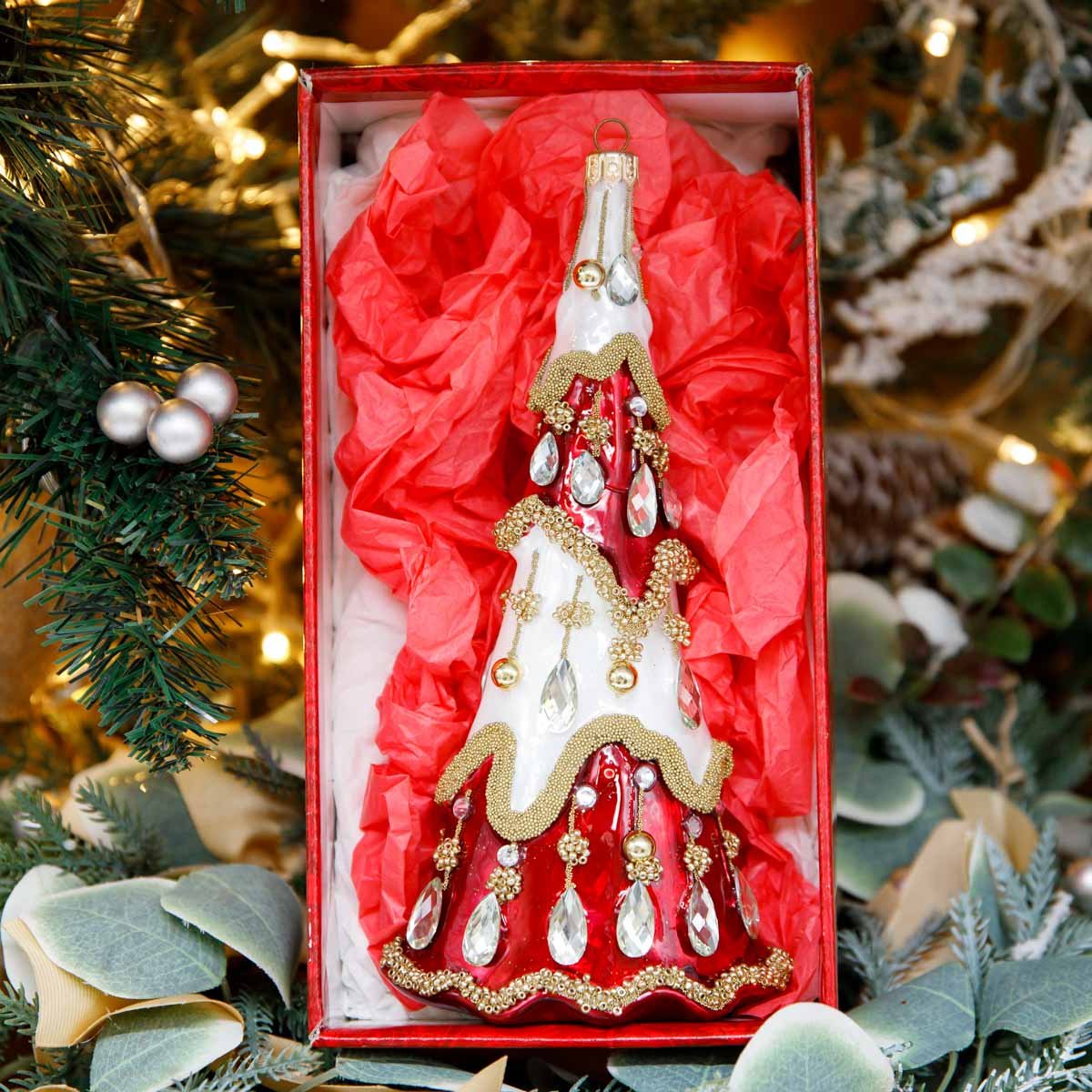Украшение елочное Елка новогодняя стекло 21х9,5см 20092301