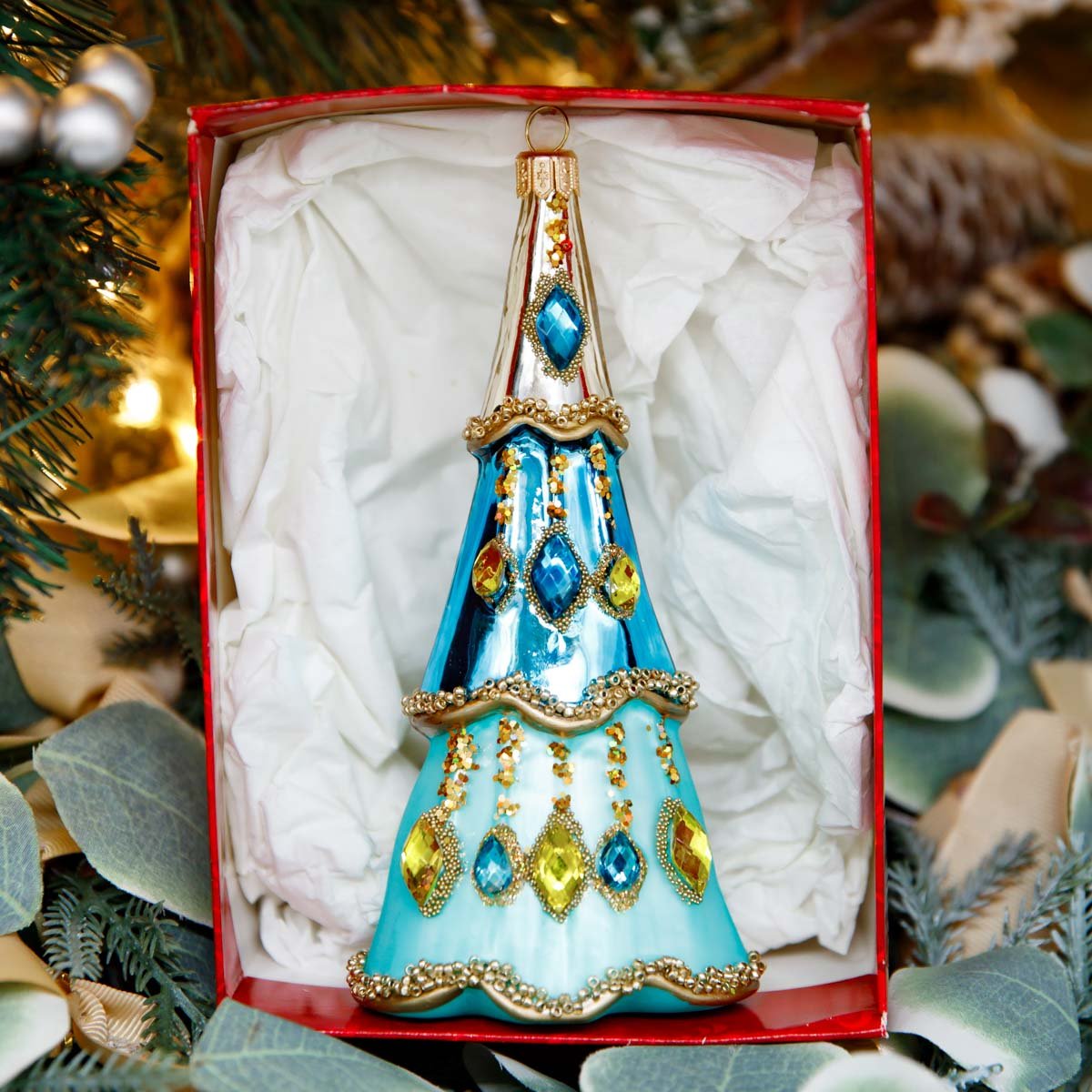 Украшение елочное Елочка в стразах Тиффани стекло 16х7см 20092303