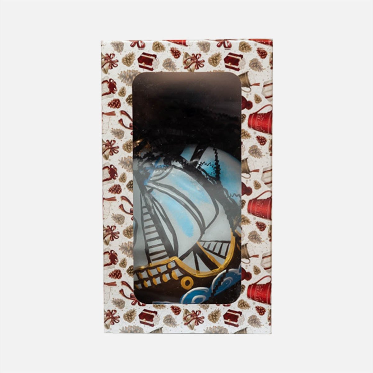 Украшение елочное Эвис Фрегат с ручной росписью стекло 9,3см