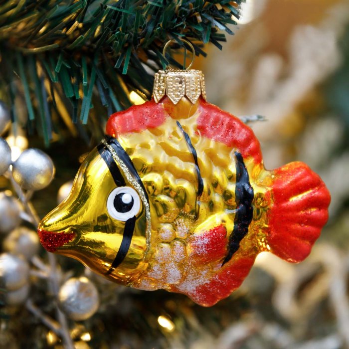 Украшение елочное Эвис Рыбка скалярия-06 с росписью стекло 6,7см