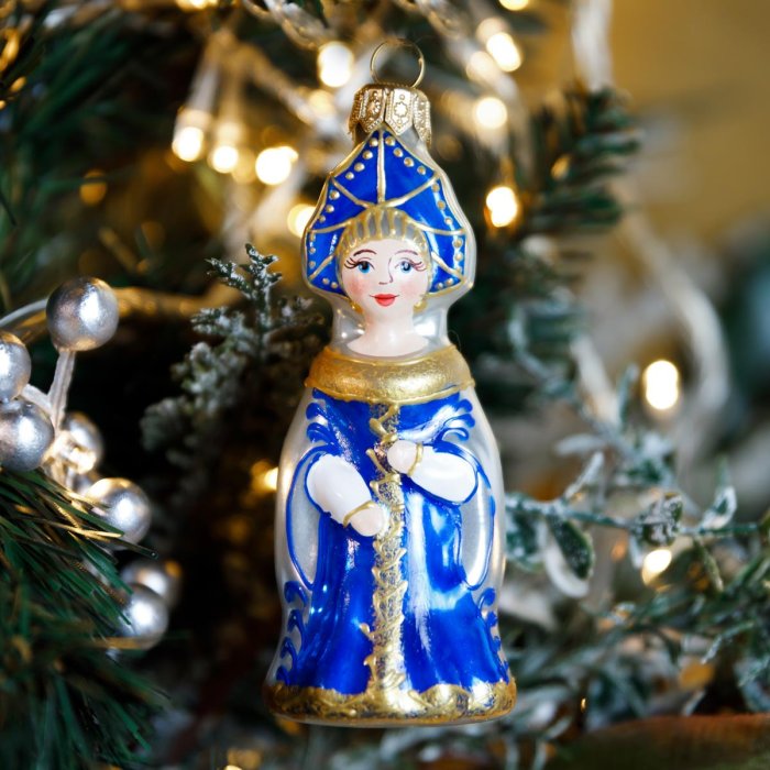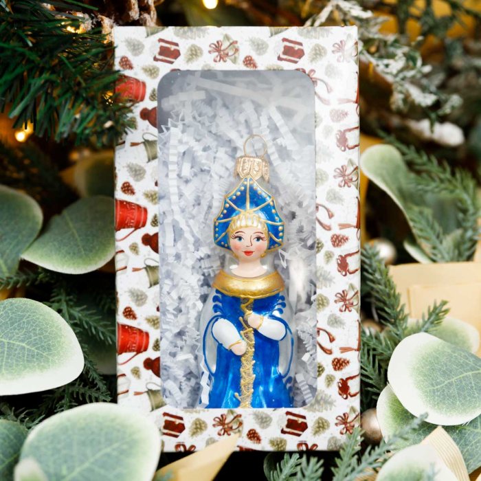 Украшение елочное Эвис Снегурка с росписью стекло 8,5см 16 15 084 07