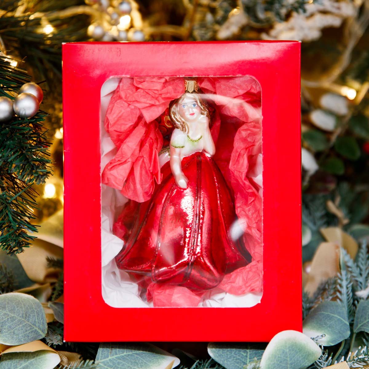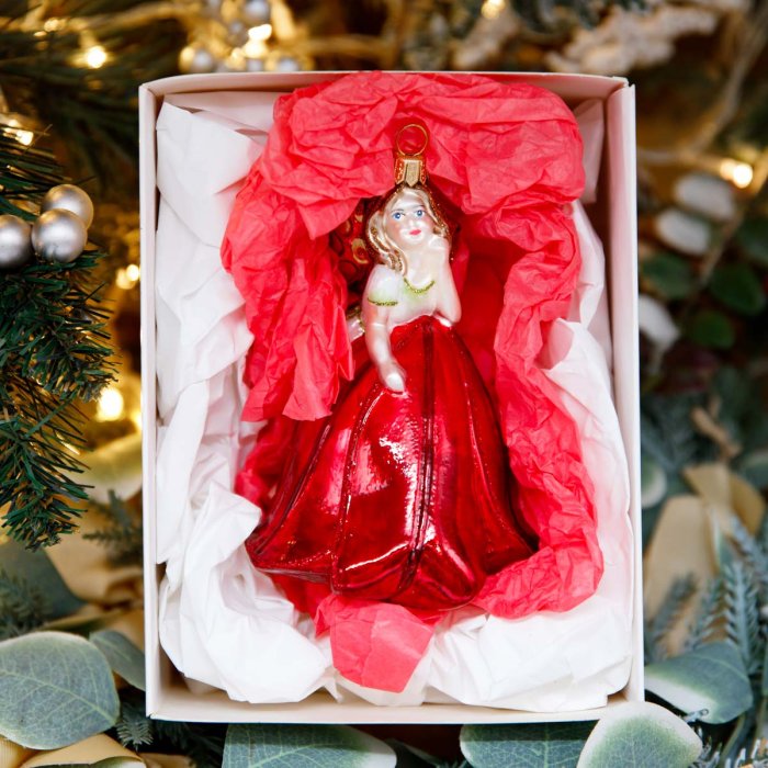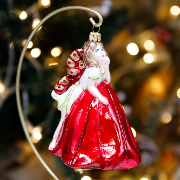 Украшение елочное Фея Красный тюльп стекло 13х9см GW093G
