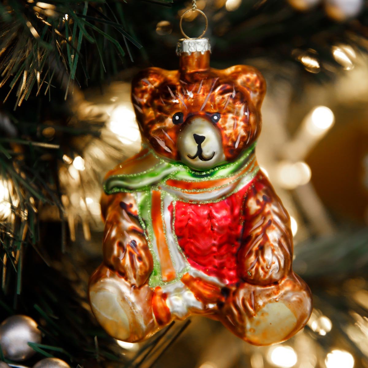 Украшение елочное Холидей Классик Медвежонок Тедди стекло 7х6х10см