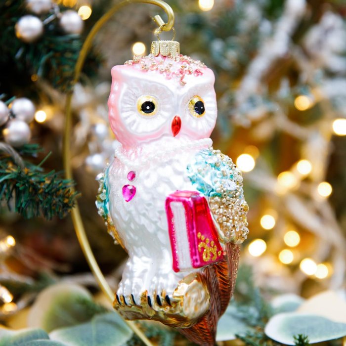 Украшение елочное Холидей Классик Сова Книголюб стекло 7,5х5х16см