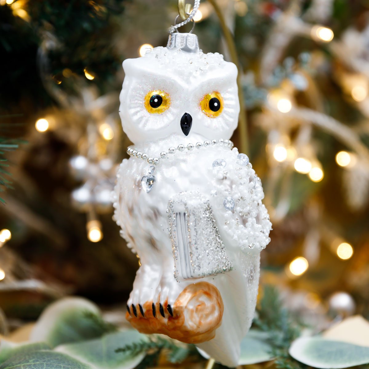Украшение елочное Холидей Классик Сова в библиотеке стекло 7,5х5х16см