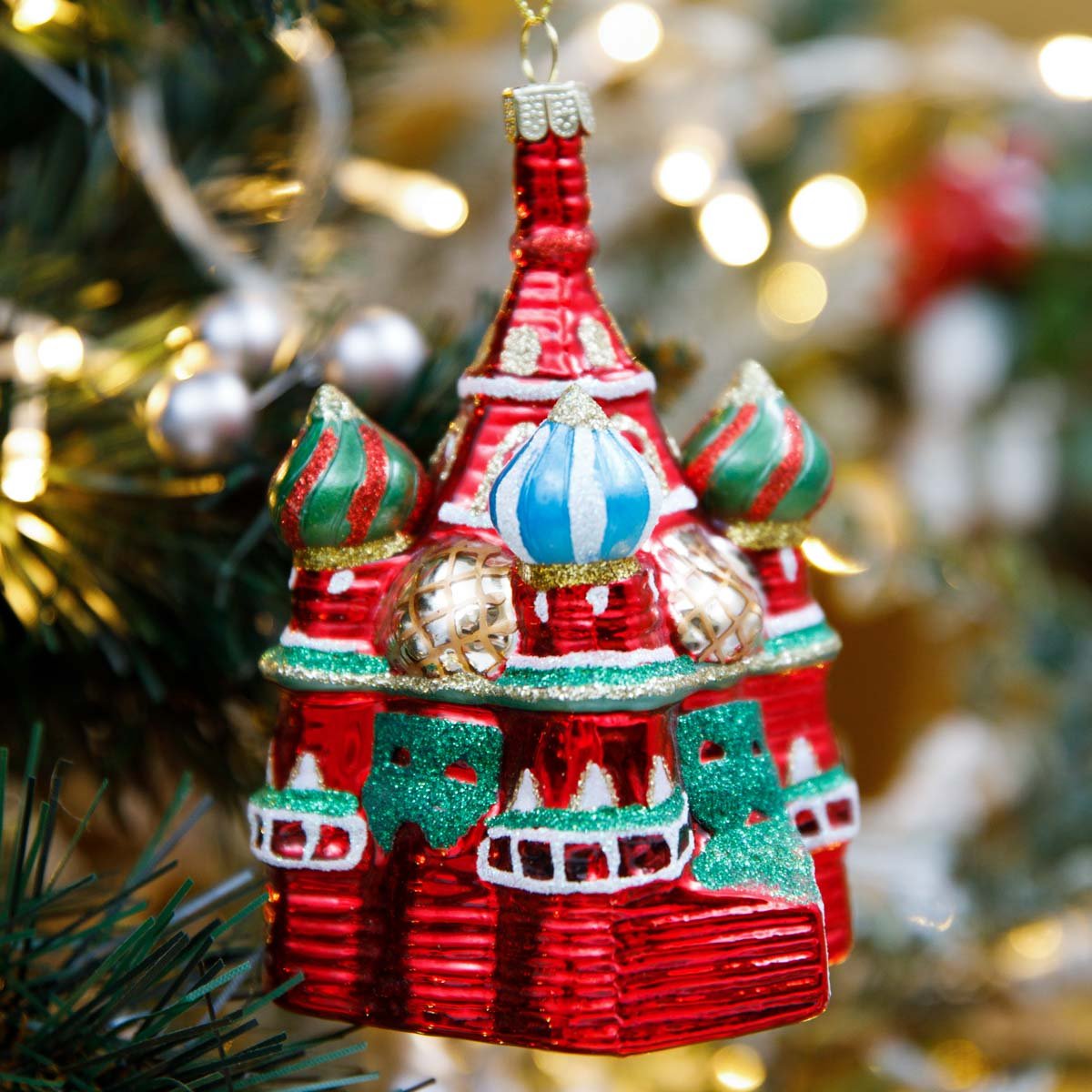 Украшение елочное Храм Василия Блаженного стекло 7,4х13см GLT357