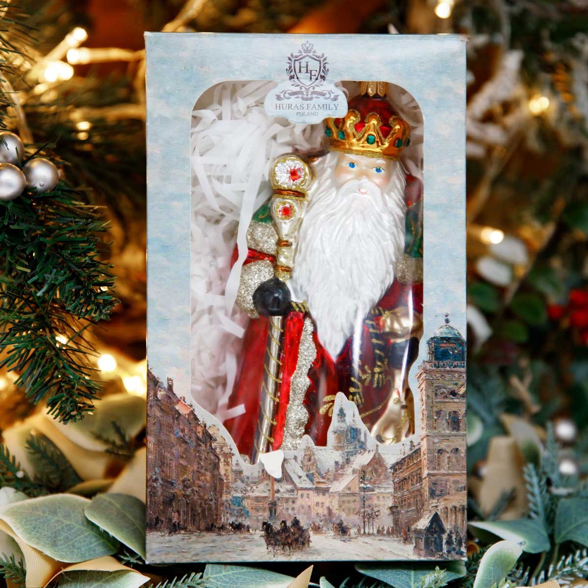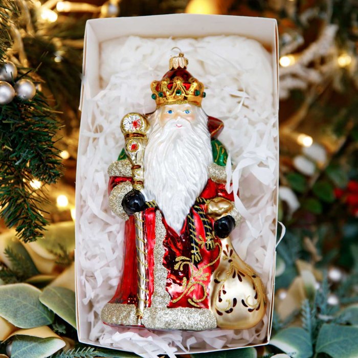 Украшение елочное Королевский Дед Мороз стекло 18,5х11см S496