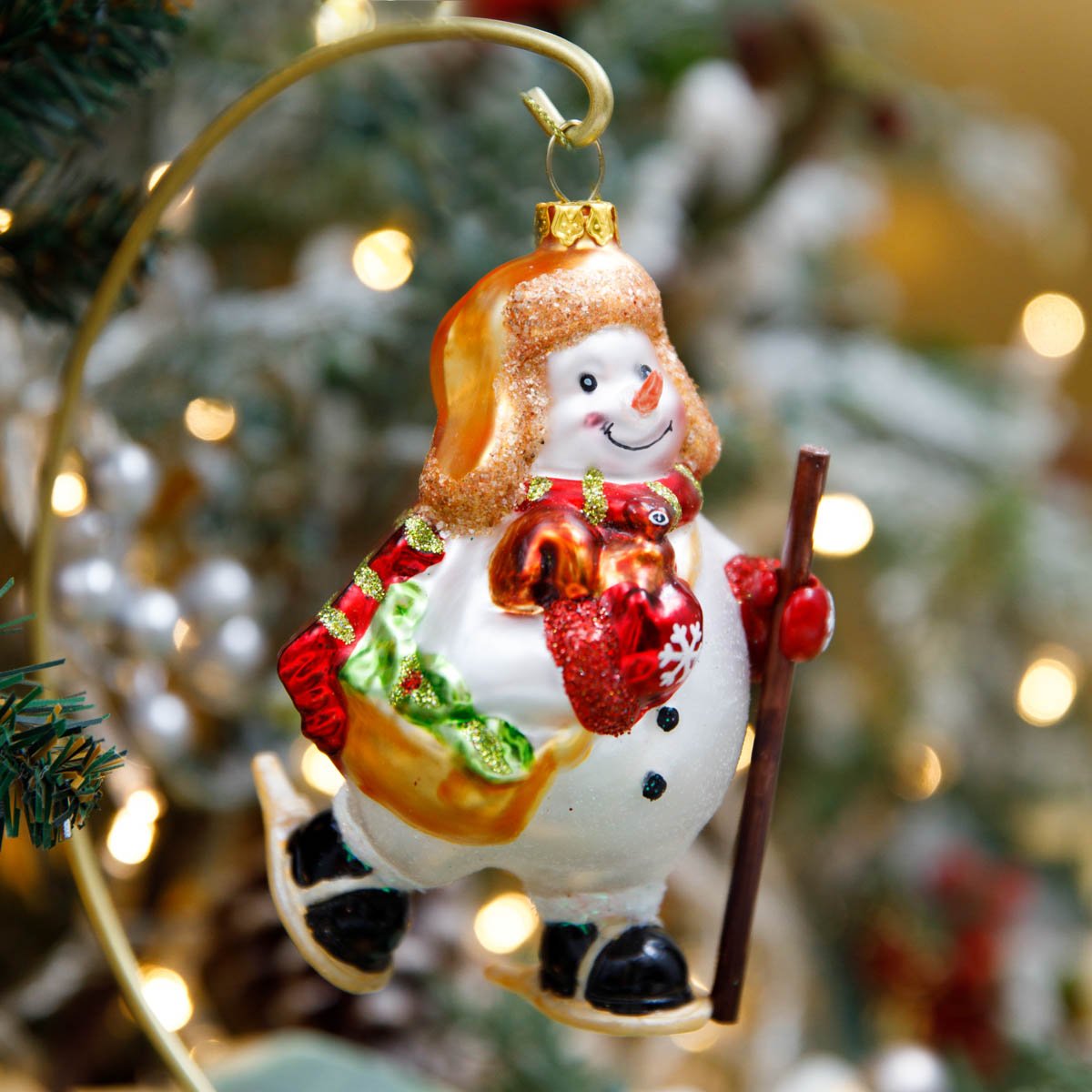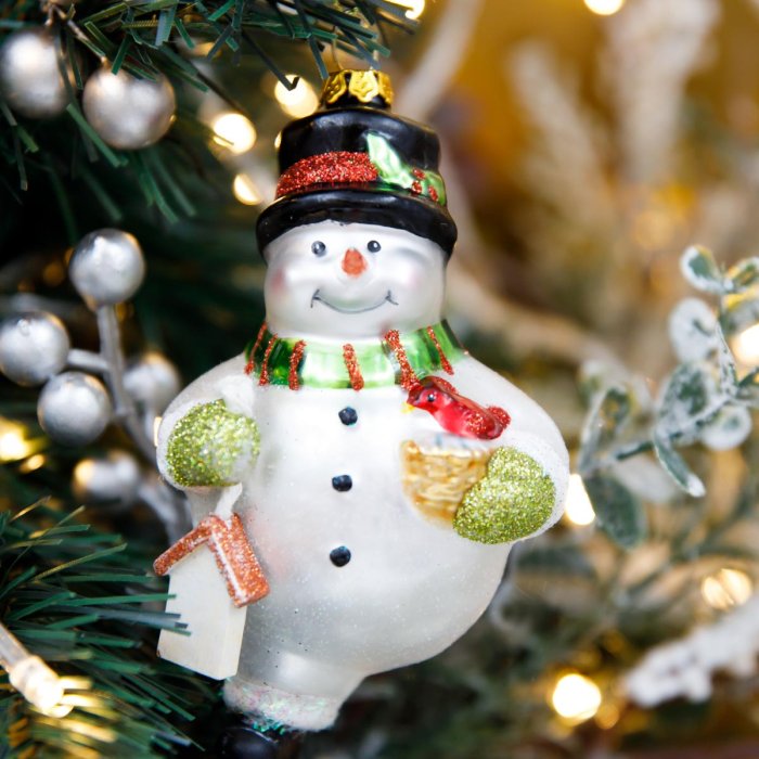 Украшение елочное Лесные снеговички спортсмены стекло 7,5х5,5х11см