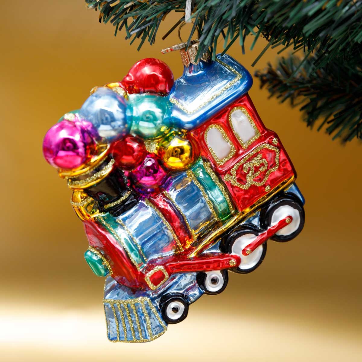 Украшение елочное Паровозик Чух-Чух стекло 10,5х9,5см S880