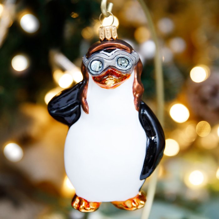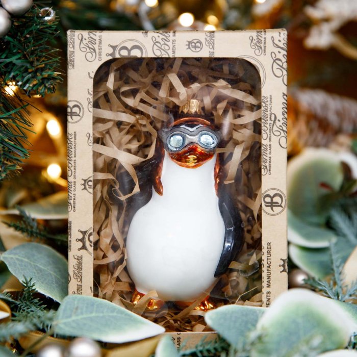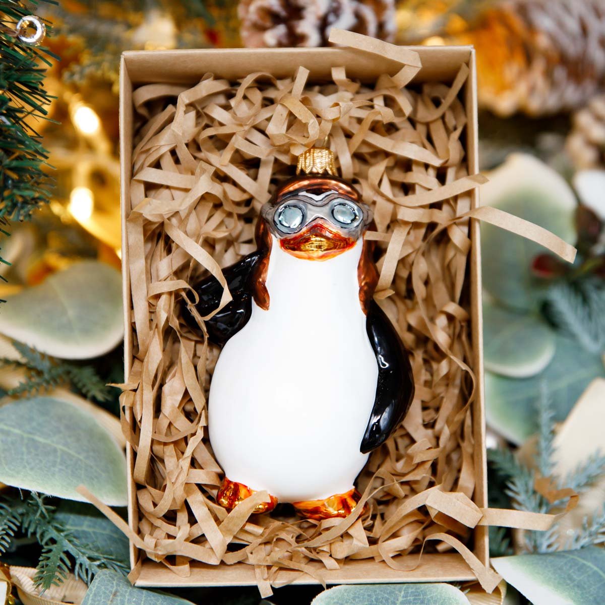 Украшение елочное Пингвин авиатор стекло 11х7см FBF17