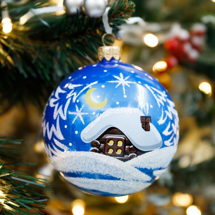 Украшение елочное Шар 5 Лесная избушка 11,5м стекло С1548