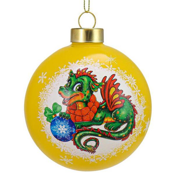 Украшение елочное Шар Дракоша в шарфике 8см стекло ЕШ-4258