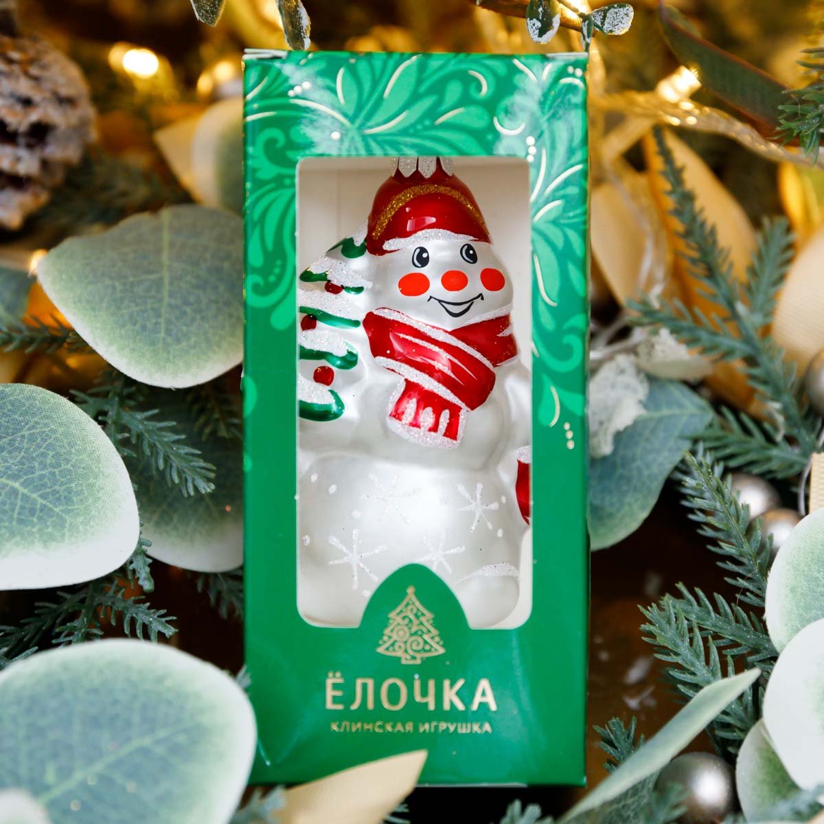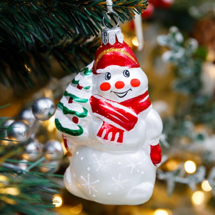 Украшение елочное Снеговик с ёлкой 11,5см стеклоС1777
