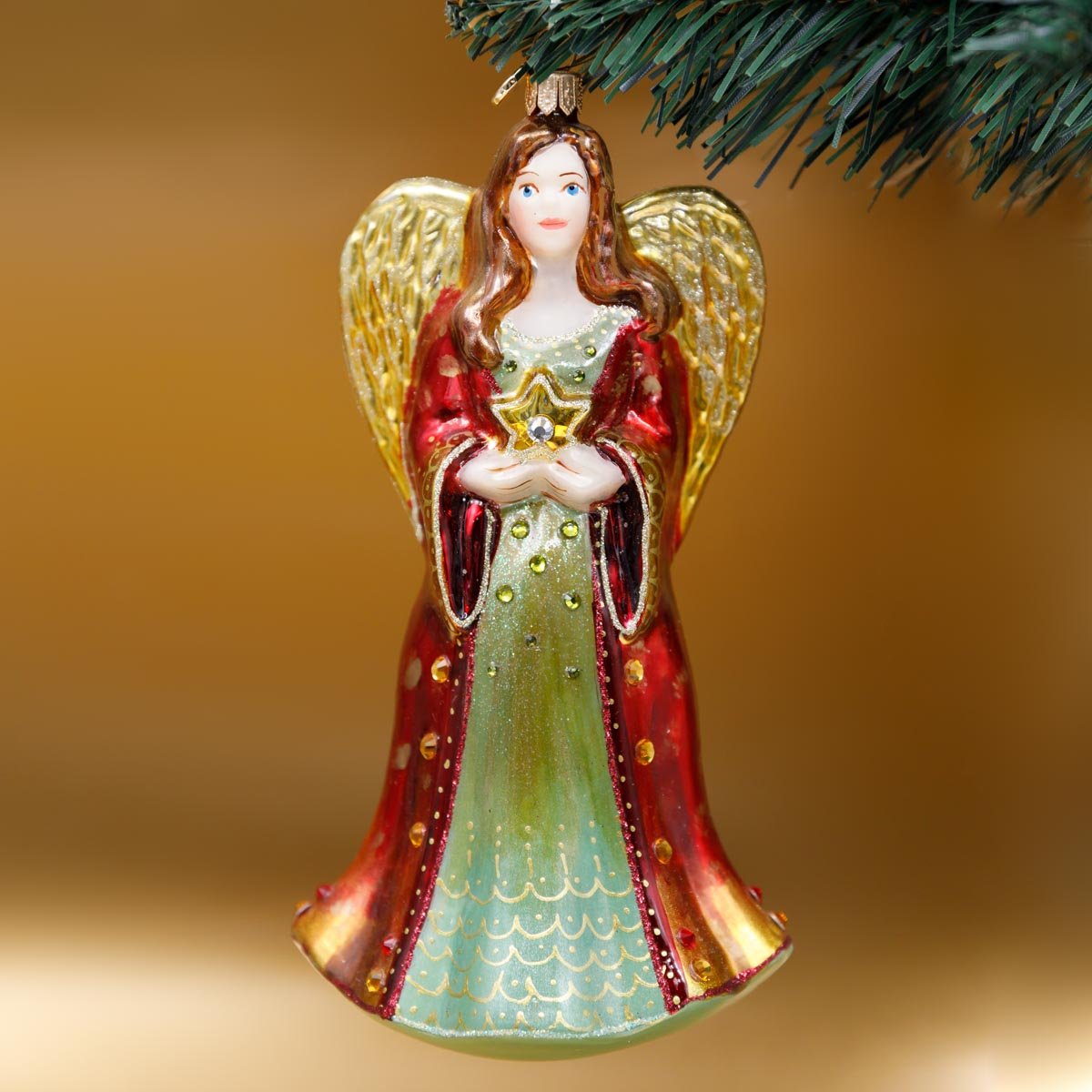 Украшение елочное Янтарный ангел со звездой стекло 15х4см 4578BRS