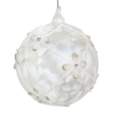 Украшение елочШишиШар матовый с цветком из блесток 12см стекло62591