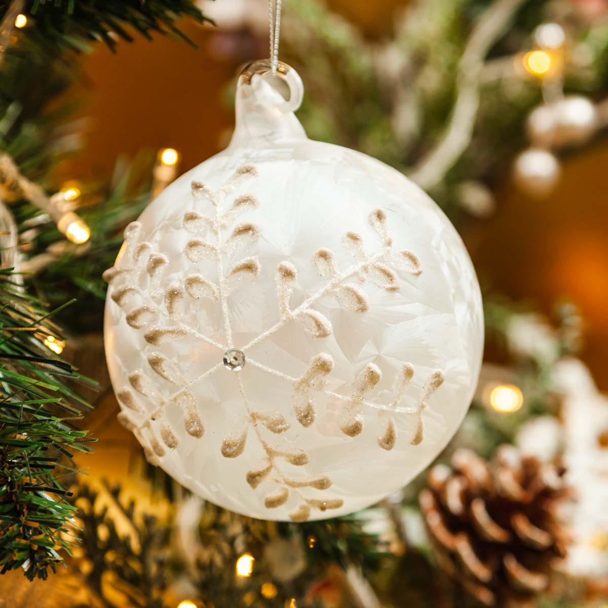 Украшение елочШишиШар матовый со снежинкой из блесток 10см стек62593