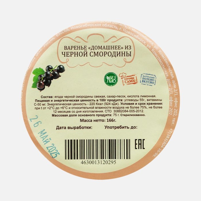 Варенье Домашнее из Черной смородины ст/б 166г