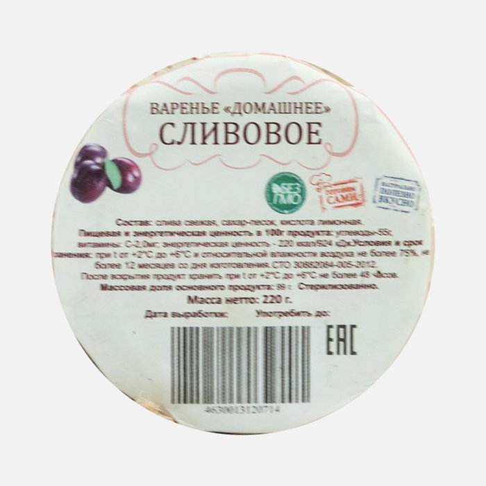 Варенье Домашнее сливовое ст/б 220г