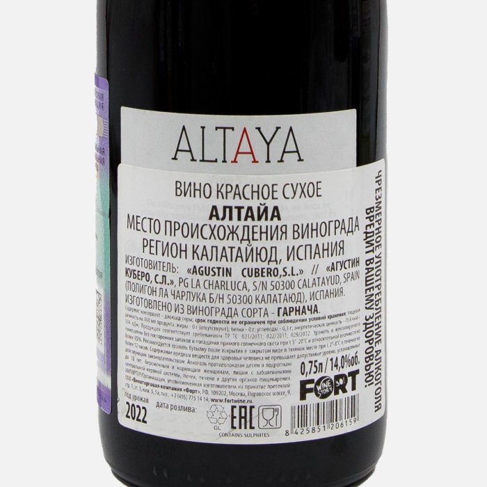 Вино Алтайа кр сух 14% ст/б 0,75л