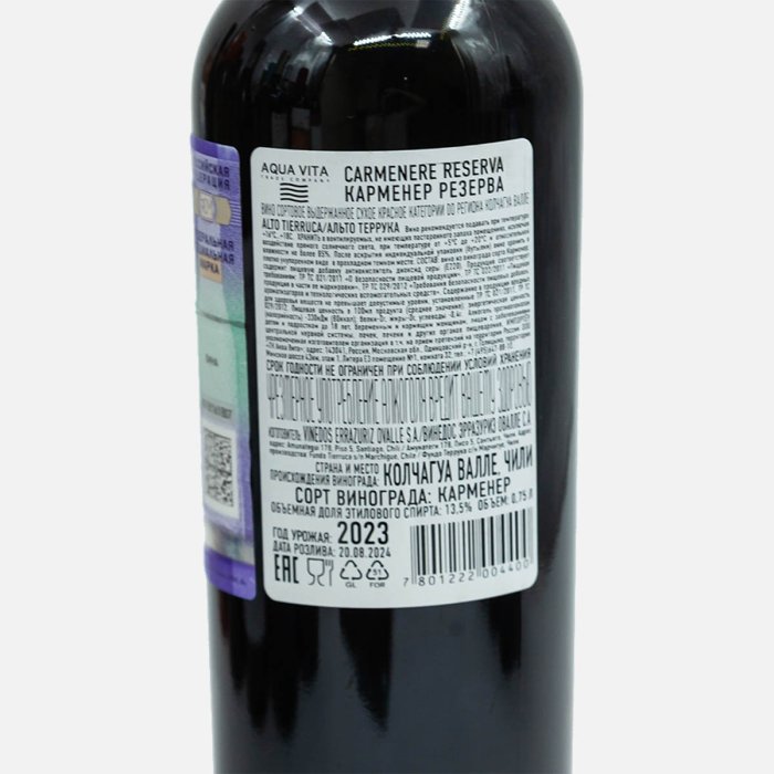 Вино Альто Террука Карменер Резерва ДОсорт выд кр сух10.5-13.5%ст/б0,75