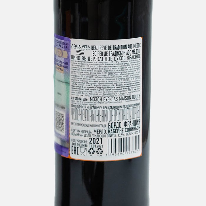 Вино Бо Рев Де Традисьон Медок АОС выд кр сух 12.5-13.5% ст/б 0,75л