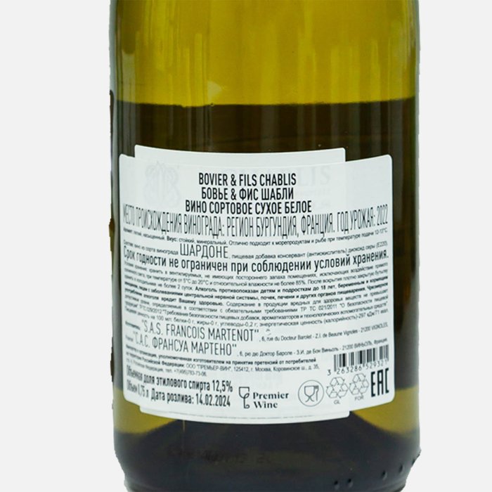 Вино Бовье энд Фис Шабли сорт бел сух 12.5% ст/б 0,75л